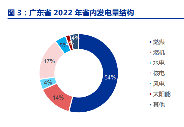 2022年是1439號文發(fā)布后電力市場運行的第一個完整年,以廣東省為例,廣東省 2022 年累計發(fā)受電量 7616 億千瓦時,其中外省送電 1772 億千瓦時,本地電源發(fā)電量 5844 億 千瓦時,從交易電量來看,2022 年廣東省總共完成交易電量 5309 億元,占本省機組發(fā)電 量的比例超過 90%,其中直接交易電量 2986 億千瓦時,占本身機組發(fā)電量比例為 51%。 在直接交易電量中,中長期電量 2871 億千瓦時,占比 96%,其中年度交易 2662 億千瓦時, 月度交易 223 億千瓦時,其余為周交易以及多日交易等?,F(xiàn)貨偏差電量 100 億千瓦時,但 發(fā)電側日前總成交電量達到了 3800 億千瓦時。 2022 年廣東省內(nèi)機組煤電、氣電、水電、核電、風電和太陽能發(fā)電量分別為 3157、 829、254、1019、270、103 億千瓦時,煤電占比為 54%。但在電力市場中,煤電是絕對 主力,中長期市場交易電量 2871 億千瓦時中煤電、氣電、核電占比分別為 74.8%、20% 和 5.2%。