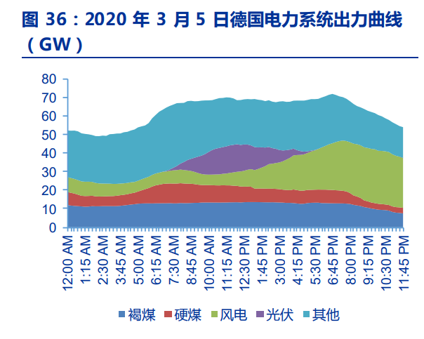 煤電是當(dāng)前潛力最大的靈活性資源之一。截止 2022 年底我國煤電裝機(jī)已突破 12 億千 瓦,后續(xù)仍將保持一定規(guī)模的建設(shè)。但我國煤電靈活性較差,純凝機(jī)組不經(jīng)過改造最低出 力一般只有額定容量的 50%左右,熱電聯(lián)產(chǎn)機(jī)組在供熱期則更差。如果通過改造將最低出 力降低至 25%則可以釋放出僅 5 億千瓦調(diào)節(jié)能力,大約相當(dāng)于 250GW 抽水蓄能,是現(xiàn)存 抽蓄調(diào)節(jié)能力的 5 倍。德國 2021 年煤電利用小時(shí)數(shù) 3664 小時(shí),其中硬煤 4980 小時(shí),褐 煤 2346 小時(shí),中國 2022 年利用小時(shí)數(shù)達(dá)到近 4700 小時(shí),仍有進(jìn)一步下降空間;(2) 以日內(nèi)波動(dòng)來看,德國 2020 年 3 月 5 日晚間風(fēng)電出力大幅增加,從午間約 7GW 大幅增 加至晚間超過 28GW,硬煤發(fā)電迅速從最高 10.7GW 調(diào)減至不足 3GW,日內(nèi)壓低負(fù)荷到 30%以下,為新能源消納做出巨大貢獻(xiàn)。