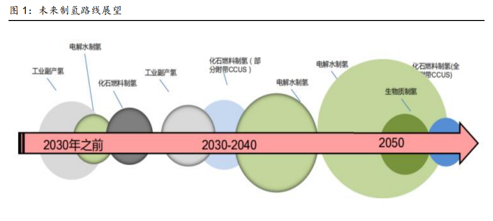 發(fā)展氫能是達到全球“雙碳”目標的重要途徑。氫能是一種來源豐富、綠色低碳、應(yīng)用廣 泛的二次能源,能幫助可再生能源大規(guī)模消納,實現(xiàn)電網(wǎng)大規(guī)模調(diào)峰和跨季節(jié)、跨地域儲 能,加快推進工業(yè)、建筑、交通等領(lǐng)域的低碳化。目前全球氫能發(fā)展如火如荼,中國國家 發(fā)改委、國家能源局聯(lián)合印發(fā)了《氫能產(chǎn)業(yè)發(fā)展中長期規(guī)劃(2021-2035 年)》確定了氫 能是未來國家能源體系的重要組成部分,海外對綠氫的重視程度也越來越高,2020 年歐 盟發(fā)布了《歐盟氫能戰(zhàn)略》,旨在推動氫能在工業(yè)、交通、發(fā)電等全領(lǐng)域應(yīng)用;同年美國發(fā) 布《氫能計劃發(fā)展規(guī)劃》,指定多項關(guān)鍵技術(shù)經(jīng)濟指標,期望成為氫能產(chǎn)業(yè)鏈中的市場領(lǐng)導 者。我們認為氫能的開發(fā)和利用有望引發(fā)深刻的能源革命,必須重視氫能行業(yè)的發(fā)展和投 資機會。