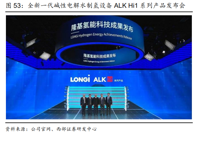 實(shí)施“綠電+綠氫”戰(zhàn)略,氫能業(yè)務(wù)蓬勃發(fā)展。光伏發(fā)電已成為全球最具經(jīng)濟(jì)性的清潔能 源,“綠電+綠氫”將推動(dòng)制氫成本 LCOH(單位制氫成本)的下降,同時(shí)有效克服可再生能 源間歇性、儲(chǔ)存性問題。隆基氫能提供的“綠電+綠氫”解決方案能全面覆蓋合成甲醇、合 成氨、鋼鐵冶煉、石油煉化等領(lǐng)域。隆基氫能作為領(lǐng)先企業(yè),在 2022 年 5 月成功入圍中 石化首個(gè)萬噸級(jí)綠氫示范項(xiàng)目,為其提供分布式光伏和光伏地面電站的解決方案,并提供 綠氫生產(chǎn)裝備以及制氫相關(guān)解決方案。萬華化學(xué)與隆基綠能于 2023 年達(dá)成戰(zhàn)略合作,實(shí) 現(xiàn)產(chǎn)業(yè)優(yōu)勢(shì)互補(bǔ),助力“雙碳”目標(biāo)實(shí)現(xiàn)。據(jù)證券之星披露,隆基綠能擬與可再生和清潔 能源開發(fā)商 Invenergy 合作,在美國(guó)俄亥俄州建設(shè)一處 5GW 光伏組件工廠。