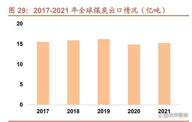 地緣政治局勢變化影響能源市場,全球動力煤價格高企抬升中國動力煤進口成本。受疫情影響,2020 年以來全球煤 炭出口數(shù)量持續(xù)下降,2020 年全球煤炭出口總量為 14.86 億噸,較 2019 年下降 8.3%,2021 年回升至 15.27 億噸, 但仍低于 2019 年水平。而地緣政治局勢的惡化則進一步影響了煤炭市場,2022 年動力煤供應進一步惡化。2022 年 1 月,印尼政府為緩解國內電廠缺煤形勢宣布 1 月內禁止出口煤炭,引發(fā)國際煤炭市場震蕩,海運煤市場供給大幅減 少,煤價開啟上行之路。2022 年 2 月,俄烏沖突爆發(fā),美國與歐盟對俄羅斯實行能源禁運,俄羅斯 3 月以來煤炭、 石油、天然氣出口量均大幅下降,煤炭出口的下降直接沖擊了全球動力煤市場,而天然氣出口的下降使得歐洲出現(xiàn)較 大程度的能源短缺,歐洲多國被迫重拾其他替代能源,煤電也包括在內,根據(jù)國際能源署的統(tǒng)計,2022 年歐洲燃煤 發(fā)電量同比增長 6%,歐洲能源結構的變化加劇了全球煤炭供給的短缺。2022 年中國的動力煤進口成本飆升。