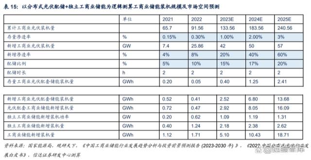 光伏發(fā)電市場化交易態(tài)勢明確,光伏配儲經(jīng)濟性有望凸顯。在收益不斷提升、成本不斷下降、政策持續(xù)推動、缺電焦慮持續(xù)的情況下,預計未來兩年經(jīng)濟性將推動工商業(yè)儲能快速發(fā)展?;冢?)存量、新增分布式光伏配套儲能滲透率不斷提升,23 年分別至 1%、20%。2)配儲比例逐步提升至 15%。3)參考觀研天下數(shù)據(jù),獨立工商業(yè)儲能新增裝機逐步提升至 2023 年的 2.2GWh。測算得到工商業(yè)儲能需求2023-2025 年有望達 5.1(+199%)、10.4、18.7GWh。