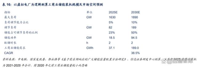 虛擬電廠帶來工商業(yè)儲能遠期需求超預期的可能。基于分布式光伏的裝機并估計儲能的滲透率,由于目 前量較小,滲透率較低,且工商業(yè)企業(yè)眾多,變化較大。能夠認為工商業(yè)儲能提供給用戶側(cè)充足的靈活 性資源,奠定虛擬電廠的發(fā)展基礎(chǔ),而虛擬電廠的建設(shè)增添未來收益增長的預期,或?qū)⒏淖児ど虡I(yè)儲能 的投資屬性,進而促進工商業(yè)儲能的發(fā)展,打開工商業(yè)儲能的遠期空間。這或?qū)硐掠纹髽I(yè)的觀念的改變、儲能的剛需屬性凸顯,進而有望帶動儲能滲透率的快速提升。預計在虛擬電廠建設(shè)順利的情況下, 工商業(yè)儲能 2025、2030 累計裝機有望達 37GWh、189GWh。