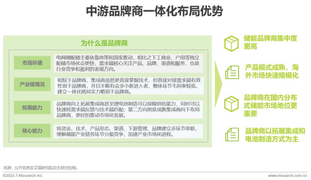 行業(yè)的發(fā)展終究要以市場為主,玩家把握市場端的打法也是產業(yè)逐漸成熟化的標志。品牌商作為鏈接制造端和市場端的核心環(huán)節(jié),直接將上端集成產品通過設計開發(fā)及管理對標售賣給下游B、C端客戶,然后搭配一系列的供應渠道、售后服務等實現商業(yè)化發(fā)展。未來的資本認可度會逐步增高。以品牌商為核心想向產業(yè)鏈上下游布局會成為行業(yè)集中化發(fā)展的主要形態(tài)。