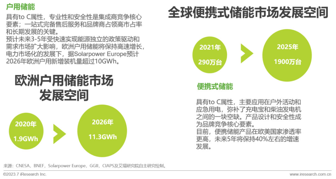 儲能海外市場高速發(fā)展主要集中在戶儲和便攜式儲能兩大領域,歐洲和美國是全球戶用儲能裝機主力,各占據約1/4的市場。高速發(fā)展的主要驅動因素有以下幾方面: