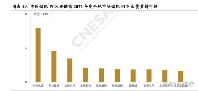 當(dāng)前儲能 PCS 生產(chǎn)廠商眾多,與光伏逆變器廠商高度重合。儲能變流器與光伏逆變器的最主要 作用都是實現(xiàn)交直流的轉(zhuǎn)換,所以兩種產(chǎn)品的主要零部件類似,且在應(yīng)用端也開始呈現(xiàn)高度的協(xié) 同效應(yīng)。在光伏 PCS 已經(jīng)取得非常大的市場規(guī)模的前提下,未來儲能 PCS 的競爭格局與光伏逆 變器趨同,延續(xù)光伏 PCS 格局。當(dāng)前儲能 PCS 行業(yè)賽道參與者眾多,來自光伏逆變器、不間斷 電源(UPS)、充電樁(EV charger)、電網(wǎng)側(cè)-輸配電設(shè)備(PTD、MVD、APF、SVG)等多領(lǐng) 域廠商。據(jù) CNESA 數(shù)據(jù),2022 年度全球市場中儲能 PCS 出貨量排名前十位的中國儲能 PCS 提 供商,依次為陽光電源、科華數(shù)能、上能電氣、古瑞瓦特、盛弘股份、南瑞繼保、固德威、索英 電氣、匯川技術(shù)和首航新能源。