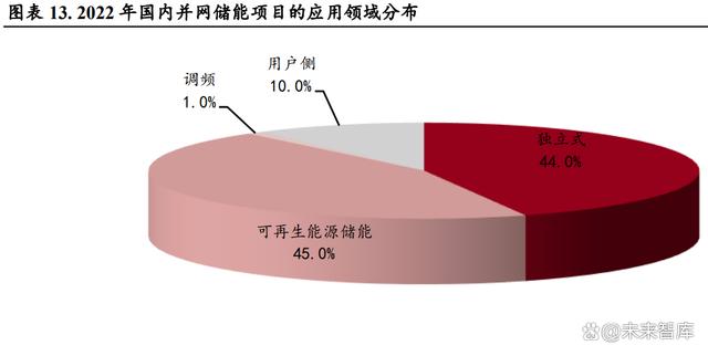 我國作為世界第一大儲能市場,應(yīng)用場景主要集中在發(fā)電側(cè)和電網(wǎng)側(cè)。從 2022 年已并網(wǎng)項目的應(yīng)用 領(lǐng)域來看,可再生能源儲能項目和獨立式儲能項目貢獻(xiàn)了絕大多數(shù)增量,分別占比達(dá) 45%和 44%, 用戶側(cè)儲能項目僅占比 10%,但其中還包括 3 個 10 小時鉛炭儲能項目。
