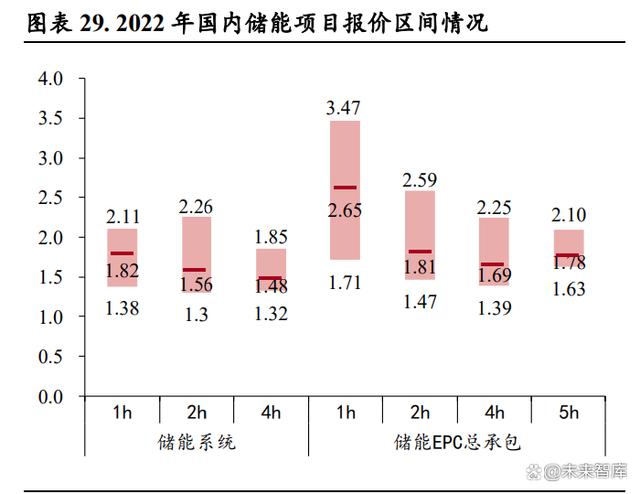 儲能系統(tǒng)投標(biāo)價格持續(xù)下行,刺激需求釋放。根據(jù)儲能與電力市場公眾號的統(tǒng)計,2022 年招標(biāo)的近 150個儲能項目中,2h 的儲能系統(tǒng)占比達(dá) 63%,平均報價 1.56 元/Wh;儲能 EPC 總承包招標(biāo)的近 120 個項目中,2h 的 EPC 項目占比達(dá) 77%,平均報價 1.81 元/Wh。從時間維度上來看,2022 年儲能系 統(tǒng)報價呈現(xiàn)出了“兩頭高中間低”的特點,并且從 5 月起持續(xù)穩(wěn)定在 1.5-1.6 元/kWh 的范圍之內(nèi), 而進(jìn)入 2023 年之后,隨著電芯主要原材料碳酸鋰價格的進(jìn)入下行通道,儲能系統(tǒng)報價屢創(chuàng)新低,2023 年 7 月份 2 小時儲能系統(tǒng)的平均報價為 1.12 元/Wh,同比下降 28.24%,環(huán)比下降 0.88%,最低報價 低至 1.00 元/Wh,而 4 小時儲能系統(tǒng)最低報價低至 0.87 元/Wh。儲能系統(tǒng)價格的快速下降,將有力 提升大儲項目業(yè)主方的投資積極性,推動項目的建設(shè)進(jìn)程。