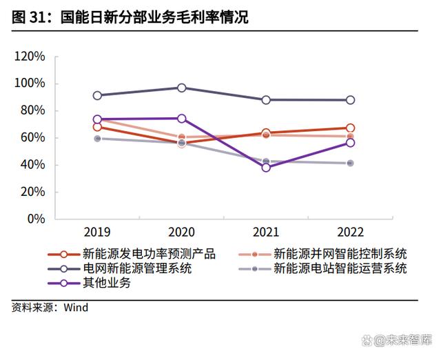 發(fā)電功率預測產(chǎn)品收入規(guī)模持續(xù)提升,新產(chǎn)品(電力交易、儲能、虛擬電廠)2022年實現(xiàn)突破。新能源發(fā)電功率預測產(chǎn)品作為公司的絕對優(yōu)勢產(chǎn)品,在營業(yè)收入中的占比始終維持高位,2022年該板塊營業(yè)收入同比增長30.49%至2.60億元,占營業(yè)收入比例提升至72.21%,毛利率同比提升3.64個pct至67.50%。此外,公司在2022年持續(xù)發(fā)力新產(chǎn)品市場開拓,三大新產(chǎn)品(電力交易、儲能、虛擬電廠)2022年實現(xiàn)營業(yè)收入1106萬元,同比高增93%,毛利率高達71.70%。