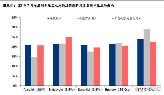 23 上半年澳洲電價處于環(huán)比上升階段,AER 預(yù)計下半年起電價上升 20%~25%。盡管相較 于 22 年,23 年眾多能源問題有所緩解,但是長期來看,煤炭和天然氣供應(yīng)仍存在不利因 素,例如國際能源價格仍然偏高,Liddell 發(fā)電站于 23 年 4 月關(guān)閉導(dǎo)致煤電減少,澳洲國內(nèi) 天然氣供應(yīng)逐漸減少等。根據(jù) AER 統(tǒng)計,23Q2 昆士蘭州、新南維爾州、維多利亞州、南 澳大利亞州四州的電力現(xiàn)貨價格分別達(dá)到 139/148/96/136 澳元/MWh,同比-59.6%/-53.9% /-60.2%/-51.4%,雖然有所下降,但是均仍顯著高于前期 21 年全年平均水平(72.63 澳元 /MWh)。由于通脹、俄烏沖突和電廠老化造成的批發(fā)價格上升,下半年電價或仍處于上升 通道。根據(jù) AER,23 年 7 月 1 日起,電價預(yù)計將有同比 20%~25%的漲幅,主要影響對象 是家庭用戶和小商販,或?qū)⒅苯哟碳ぜ彝δ馨惭b需求。