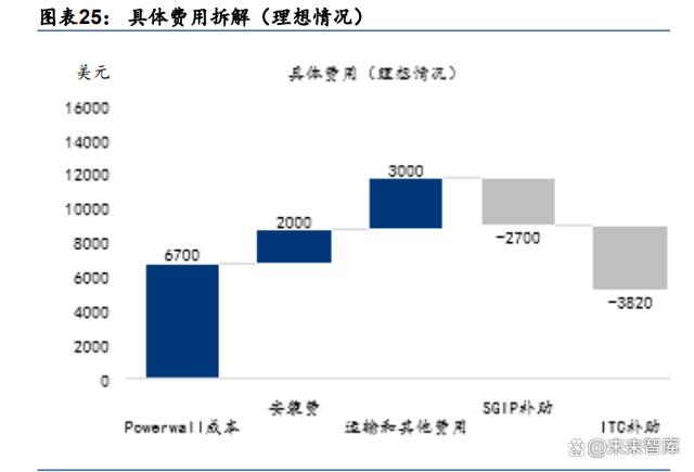 NEM 3.0:平均電力回購價格預(yù)計下降 75%,補貼下降反提升戶儲安裝經(jīng)濟性。據(jù)加州太 陽能和儲能公司(CALSSA)協(xié)會報道,NEM 3.0 協(xié)議將導(dǎo)致加州的平均太陽能電力回購 價格從度電 0.30 美元下調(diào)至 0.08 美元,相當(dāng)于 75%的下降。在此基礎(chǔ)上,根據(jù) Energysage 和 NEM 3.0 提案的預(yù)測,在 NEM 3.0 政策下僅購買戶用光伏設(shè)備的回本周期將由原來的 5-6 年延長到 9 年左右。NEM 3.0 對于家庭用光伏的支持力度大大削減,而儲能的經(jīng)濟性得 以體現(xiàn)。由于基礎(chǔ)電價隨著一天中時間不同而變化,安裝戶儲意味著用戶可以在回購電價 低的時候儲存多余的電量,在電價高的時候向電網(wǎng)回輸電力,波動性增加帶來經(jīng)濟性提升。 據(jù) NEM 3.0提案預(yù)測,安裝戶儲的回本周期最低可達(dá) 6.98年,低于僅安裝光伏的回本周期, 配儲經(jīng)濟性體現(xiàn),我們預(yù)計 2023 年 4 月后安裝的戶用光伏配儲比例將得到較大幅度提升。