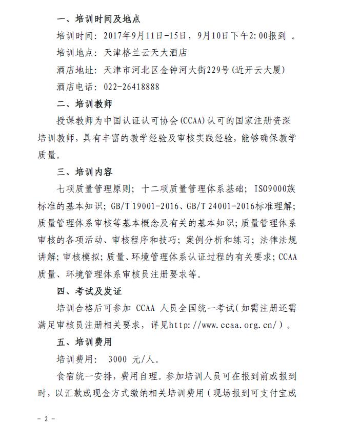 關(guān)于舉辦“質(zhì)量、環(huán)境管理體系國家注冊審核員培訓(xùn)班”的通知