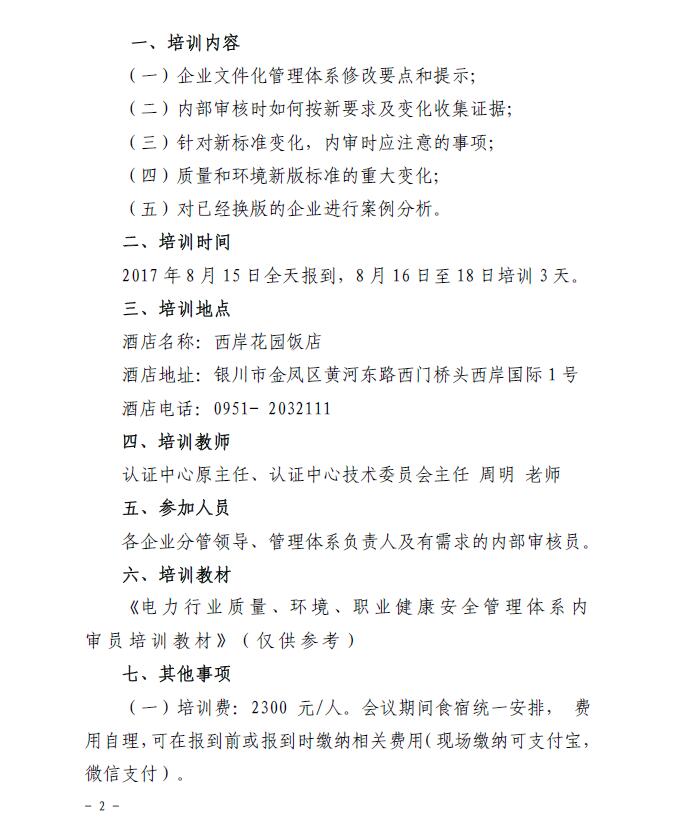 關(guān)于舉辦“2016版質(zhì)量和環(huán)境管理體系標(biāo)準(zhǔn)企業(yè)換版文件修編、內(nèi)部審核技巧培訓(xùn)班”的通知