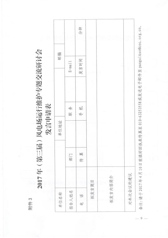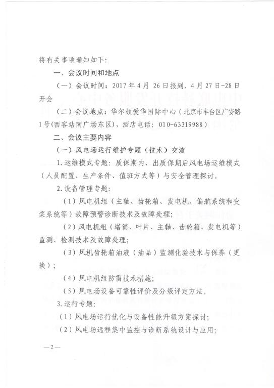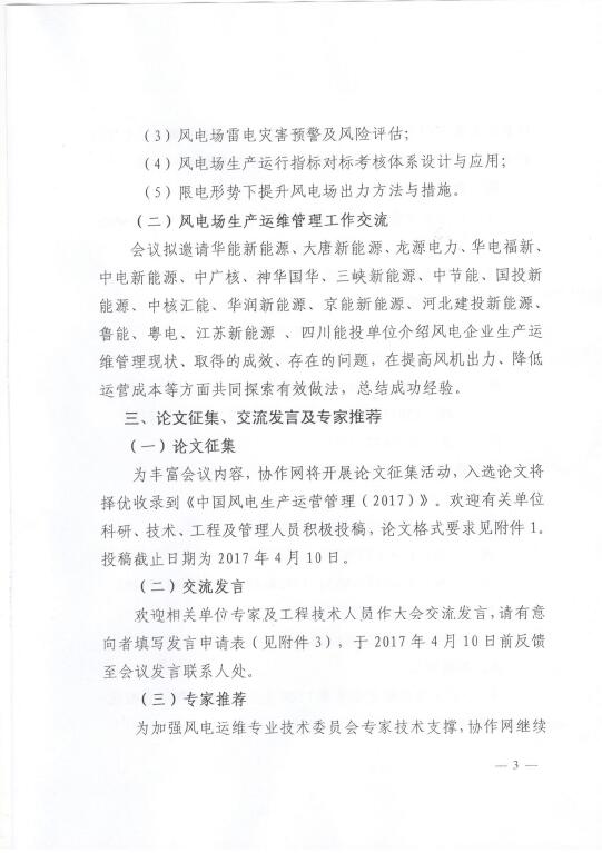 關(guān)于召開(kāi)2017年(第三屆)風(fēng)電場(chǎng)運(yùn)行維護(hù)專(zhuān)題交流研討會(huì)的通知