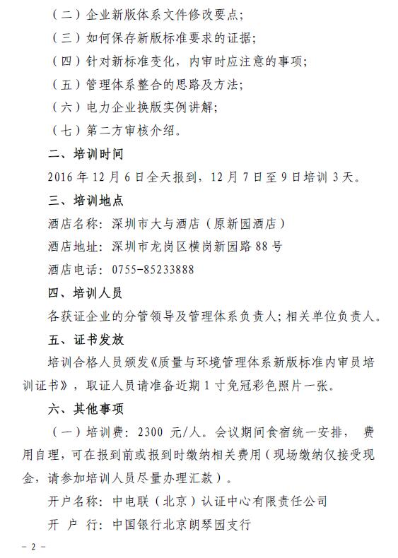 關于舉辦“《質(zhì)量管理體系標準ISO9001:2015 》和《環(huán)境管理體系標準GB/T24001-2016 》換版培訓班”的通知
