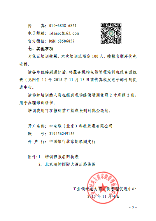 附件:1、關(guān)于舉辦工業(yè)領(lǐng)域電力需求側(cè)管理電能管理培訓(xùn)班通知(工電促[2015]11號(hào))2、培訓(xùn)班報(bào)名回執(zhí)表